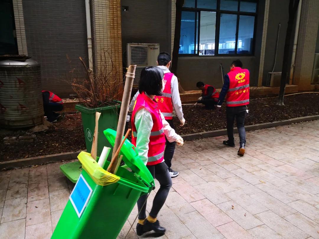 活動得到了郴州高新區(qū)機關(guān)第三黨支部的大力指導(dǎo)。炬神電子黨支部書記郭小雷身先士卒,帶領(lǐng)大家清掃道路垃圾、花壇枯枝敗葉,一派熱火朝天。